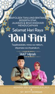 KAPOLSEK TANJUNG BINTANG BESERTA STAF MENGUCAPKAN SELAMAT HARI RAYA IDUL FITRI 1447 HIJRIAH