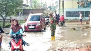 Hadir di Tengah Warga, Danramil 421-06/Natar dan Kapolsek Natar Menyatu Bersama Rakyat Tangani Banjir di Flyover Natar